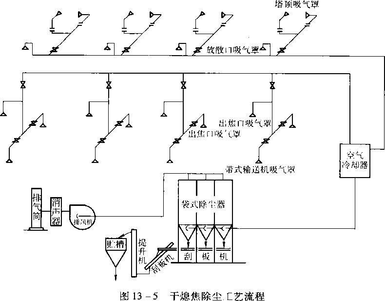 除尘工艺流程焦炉拦焦除尘工艺有热浮力罩捕集湿法喷雾除尘,车载式拦焦熄焦一体式湿法洗涤除尘,车载捕集与地面站干法袋式除尘结合等几种方式,现代正规焦炉大多采用后一种方式.拦焦除尘系统收下的烟尘正好用作装煤除尘系统预涂尘料,因...