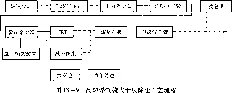 除尘工艺流程高炉煤气除尘工艺从传统的湿法改为干法是一大技术突破,从国外的反吹内滤方式改为我国的脉冲外滤方式更是高炉煤气除尘技术进步的一个里程碑.