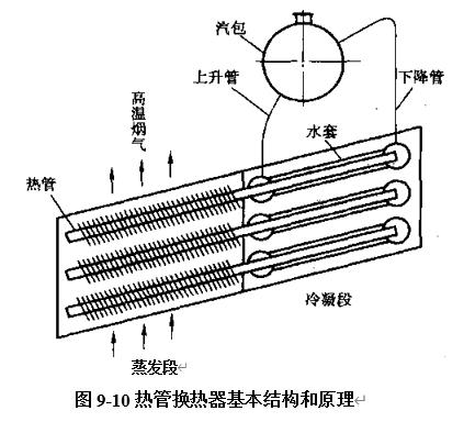 热管是一种新颖的高效换热元件.它将一束封闭管束抽成真空,内灌入传热工质,利用蒸发段(热端)的吸热蒸发效应,冷却高温气体,同时利用冷凝肆(冷端)的放热冷凝效应,加热软水汽化蒸发.