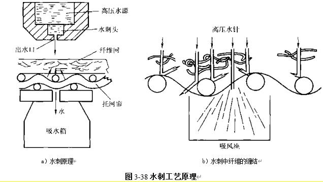 水刺非织造布的工业化生产是20世纪80年代实现的,其原理与针刺法相似,所不同的是将钢针改为极细的高压水流,利用水流的穿刺力使纤维网中的纤维相互渗透缠结.水刺法加工工艺的主要优点是:工艺较简单,产品中无黏合剂,无环境污染;...