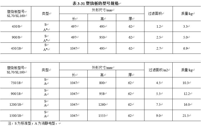 塑烧板是由几种高分子化合物粉体经铸型,烧结,形成多孔的母体,然后在表面的空隙中填充氟化树脂,再用特殊黏合剂固定而制成的刚性过滤元件.塑烧板母体孔径为40~80)|xm,而表层孔径为4〜6|xm.