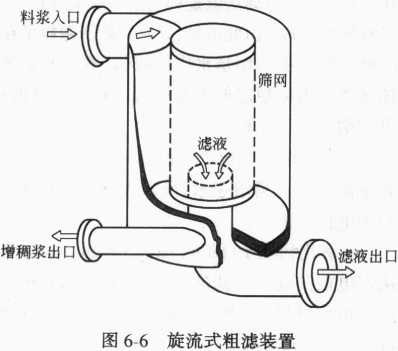 该装置虽然结构简单,但是效果极佳.它利用强力的旋流,一边连续地完成过滤和浓缩,一边洗净了筛网;而含有泥渣的浓浆,则间歇地排出筒外.又因该装置无旋转部件,所以维护工作很简单.