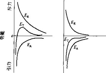 当两个粒子接近到一定程度时,二者的扩散层便重叠.重叠处的反离子浓度增大,结果引起渗透压增大,而渗透压的增大,又与自由能的增大有关联,增大的自由能,成为两粒子间的相斥力.与此同时,两粒子之间还存在着引力,即范德华力.