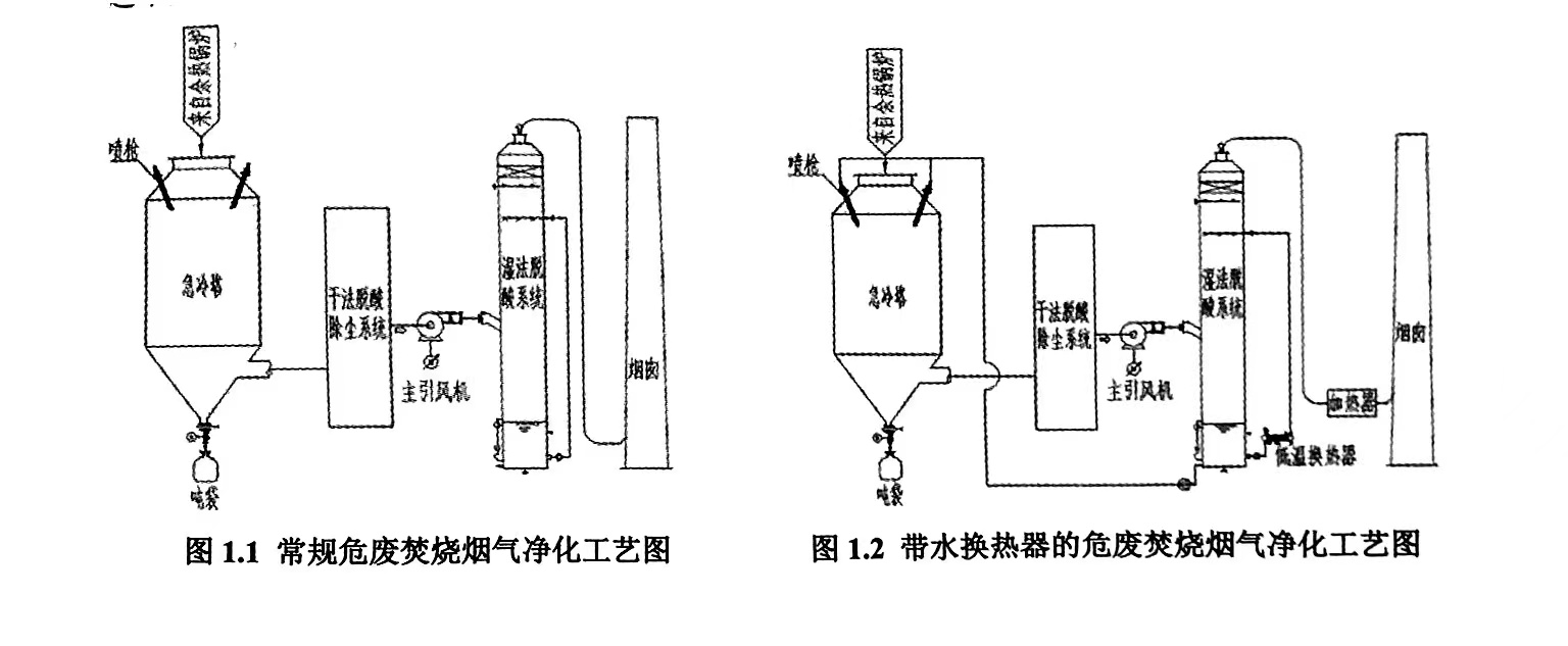 危废焚烧烟气净化系统的工艺,比较典型的有“SNCR+烟气急冷+干法脱酸+活性炭吸附+袋式除尘+主引风机+湿法脱酸+烟囱”的烟气净化工艺,此种工艺基本能满足现阶段国家和地方的环保排放要求.