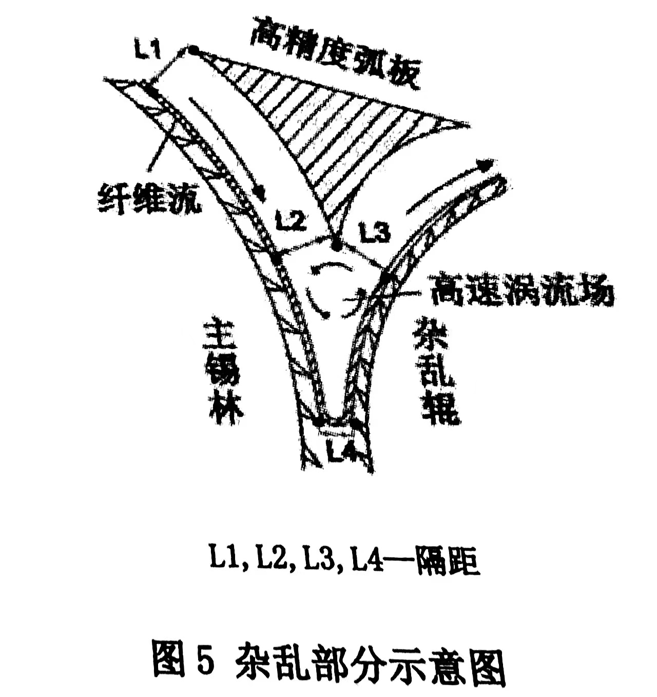 杂乱部分主要指下杂乱辊和下道夫后面的一对凝聚辊杂乱部分的杂乱作用来自由主锡林,下杂乱辊和高精度弧板构成的杂乱三角区.