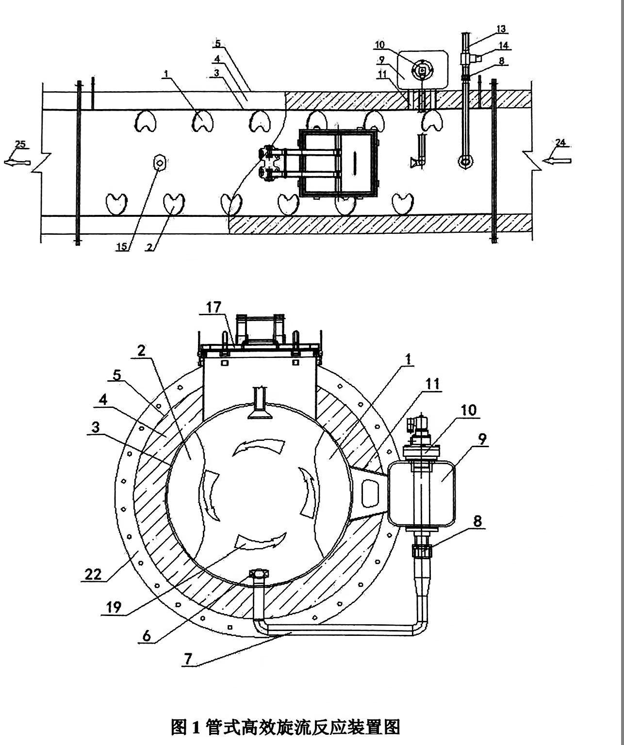 涉及大气污染治理与干法脱硫,脱硝处理技术,是一种管式高效旋流反应装置;该装置的有益效果是:具有模块式的结构设计特征,由反应装置主体,辅助功能模块及附属机构构成,是一种主要应用于干法或半干法脱硫,脱硝处理系统的反应装置,既...