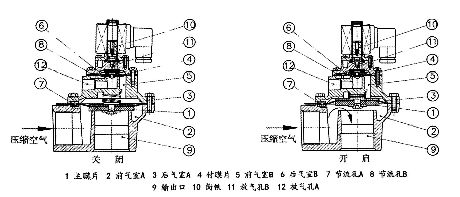 脉冲阀由阀体,阀盖,膜片,弹簧等零件组成