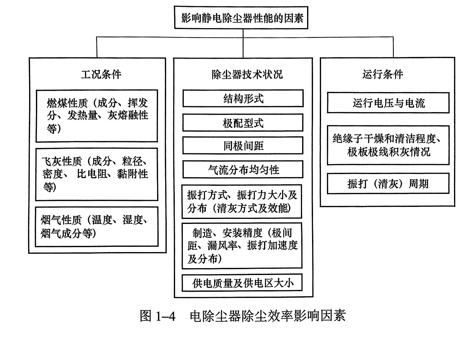 电除尘器除尘效率与很多因素有关,其主要影响因素分为三大类:①工况条件,②除尘器技术状况,③运行条件.
