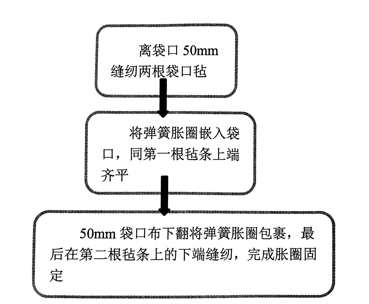 一体式高严密性无针眼袋口是在一体式毡条型袋口的基础上做了改进.实现了整条布袋一体化,并且在袋口部位无针眼.同时兼顾了毡条型袋口的各项优点,简化了滤袋袋口的生产工序.
