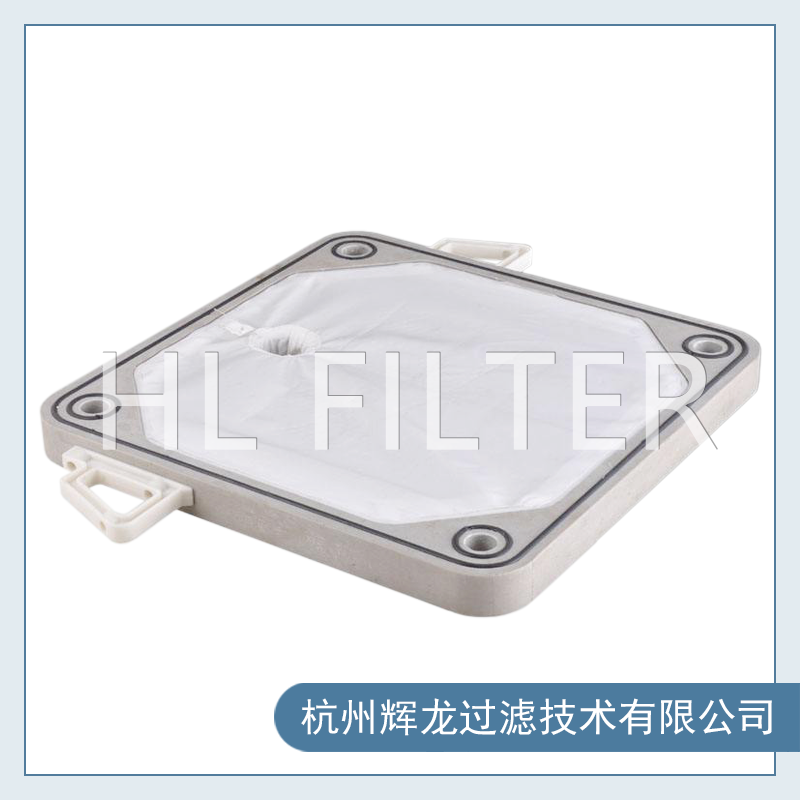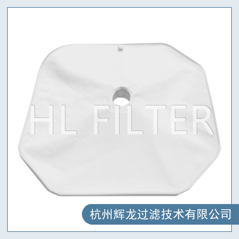 针对不同的过滤对象所要求的不同过滤精度,速度等等,都是通过使用不同的压滤机滤布又称压滤机滤袋实现的,每一块压滤机滤板都是有滤布包裹,针对不同的过滤对象的耐酸碱要求,抗拉强