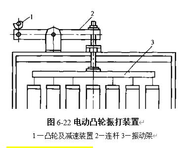 电动凸轮振打装置由凸轮连杆,振动架以及电动机减速装置组成. 电动偏心轮振打装置由偏心轮,弹簧,振动架以及电动机传动装置组成.