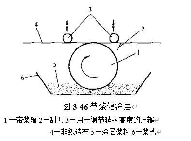 涂层整理涂层整理是将某种浆性材料均匀涂布于滤料表层的工艺过程。通过涂层可改善滤料单面、双面或整体的外观、手感和内在质量,也可使产品性能满足某些特定的(如使针刺毡防油、耐磨、硬挺等)要求。带浆辐涂层工艺如图3-46所示。近...
