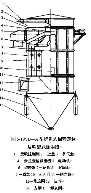 具有代表性的回转反吹清灰装置由高压风机,中心管,回转反吹臂,回转机构等组成.由高压风机产生的反吹气流通过中心管送到回转反吹臂.反吹臂上有反吹风口,与按照同心圆布置的滤袋相对应,反吹气流通过反吹风口连续吹向滤袋内部.