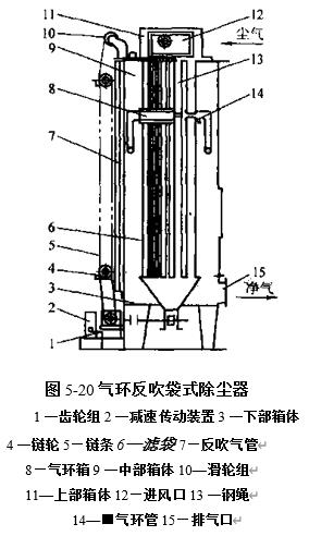 气环反吹袋式除尘器宜采用毡类滤料.该种除尘器最大的缺点是滤袋很容易因气环的移动而磨损,此外气环的移动机构故障多.因而阻碍其推广应用. 含尘气流从进风口进入上部箱体,然后进入滤袋,净化后的气体通过滤袋进入中部箱体,再由下花...