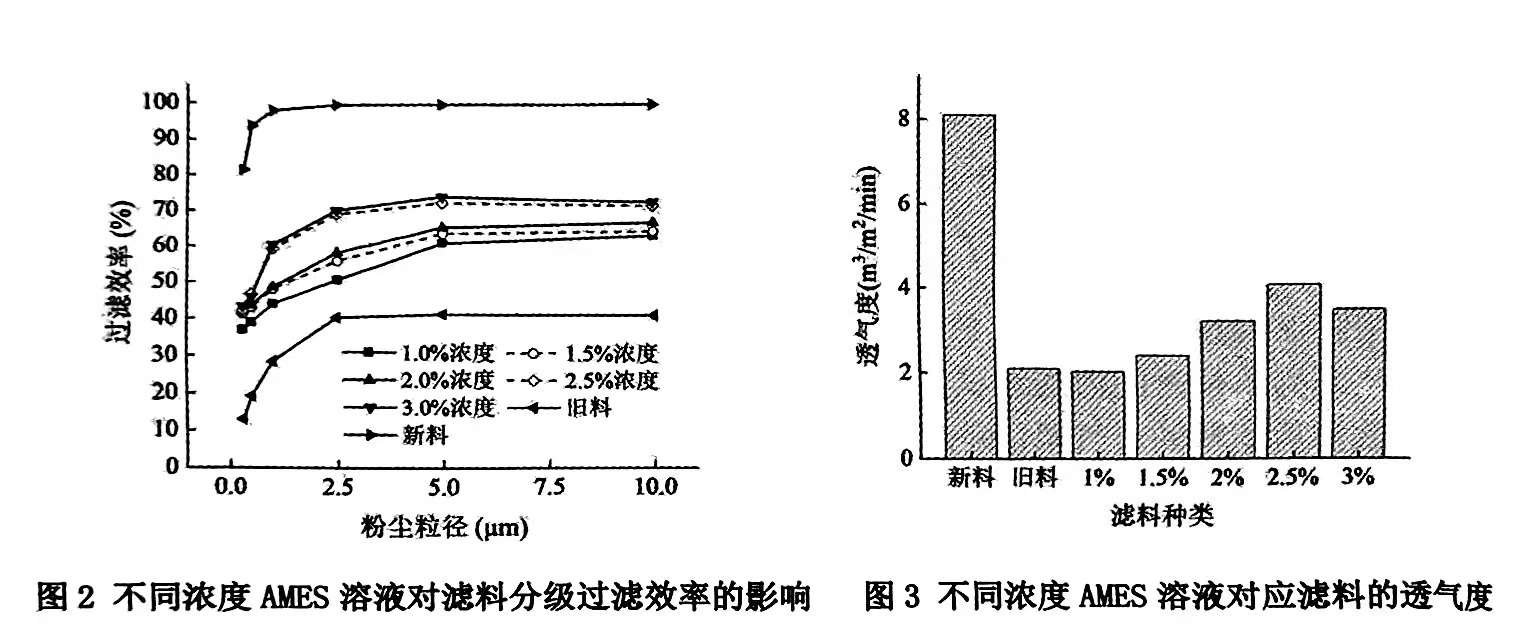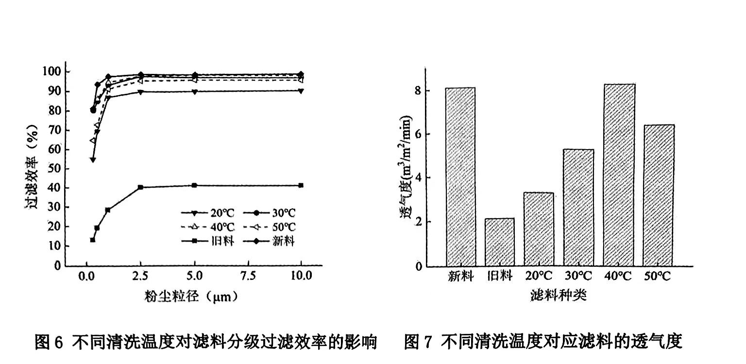 较低的温度(20℃)和较高的温度(50℃)清洗对于过滤效率的提升都不够明显,这是由于低温时大量AMES颗粒未得到很好地溶解,导致清洁作用不够,残留的粉尘仍然较多,而清洗温度高时滤料的结构容易受到破坏.