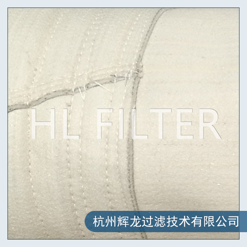 2)辉龙PTFE覆膜针刺毡滤袋,将PTFE微孔薄膜通过热覆膜的特殊工艺将针刺毡与薄膜覆合而成,表面光滑、粉尘